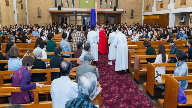 Lẽ ra thánh lễ được cử hành tại thềm Đền thờ như mọi năm, nhưng vì trời mưa, nên buổi lễ được chuyển vào bên trong thánh đường va buổi rước kiệu Mình Thánh Chúa sau đó bị hủy bỏ.