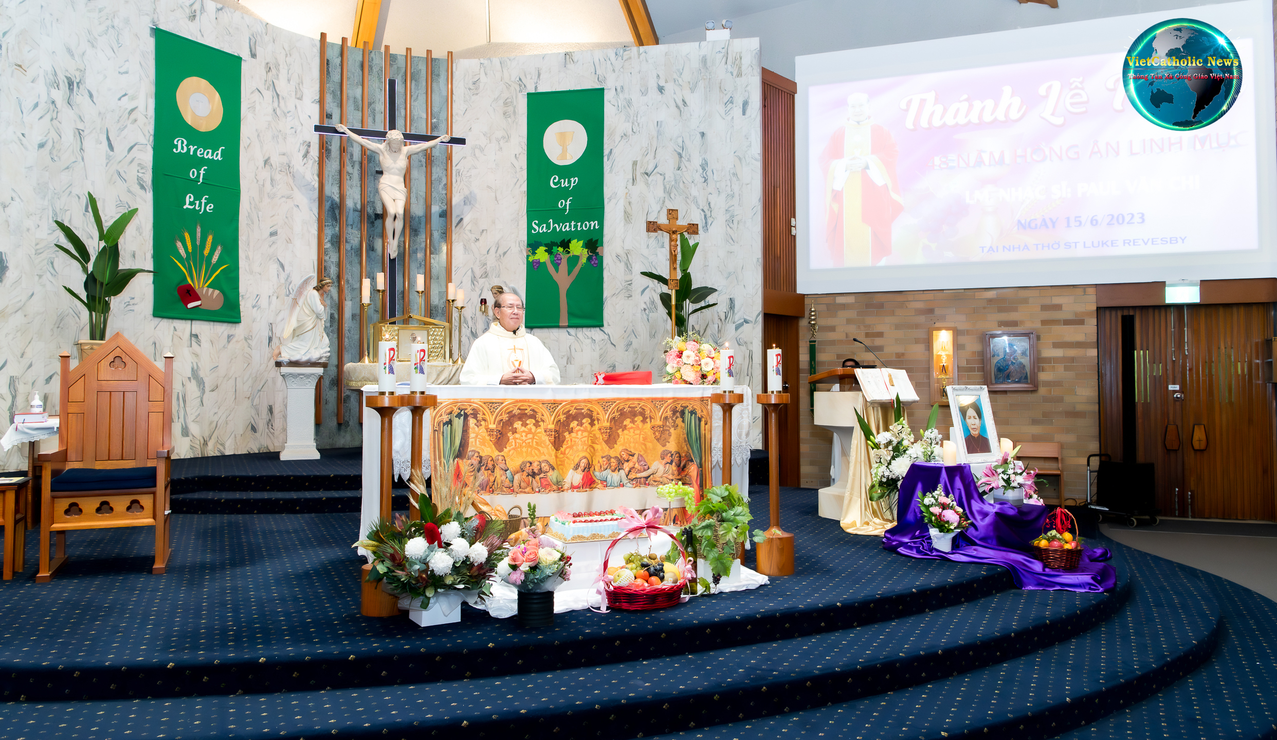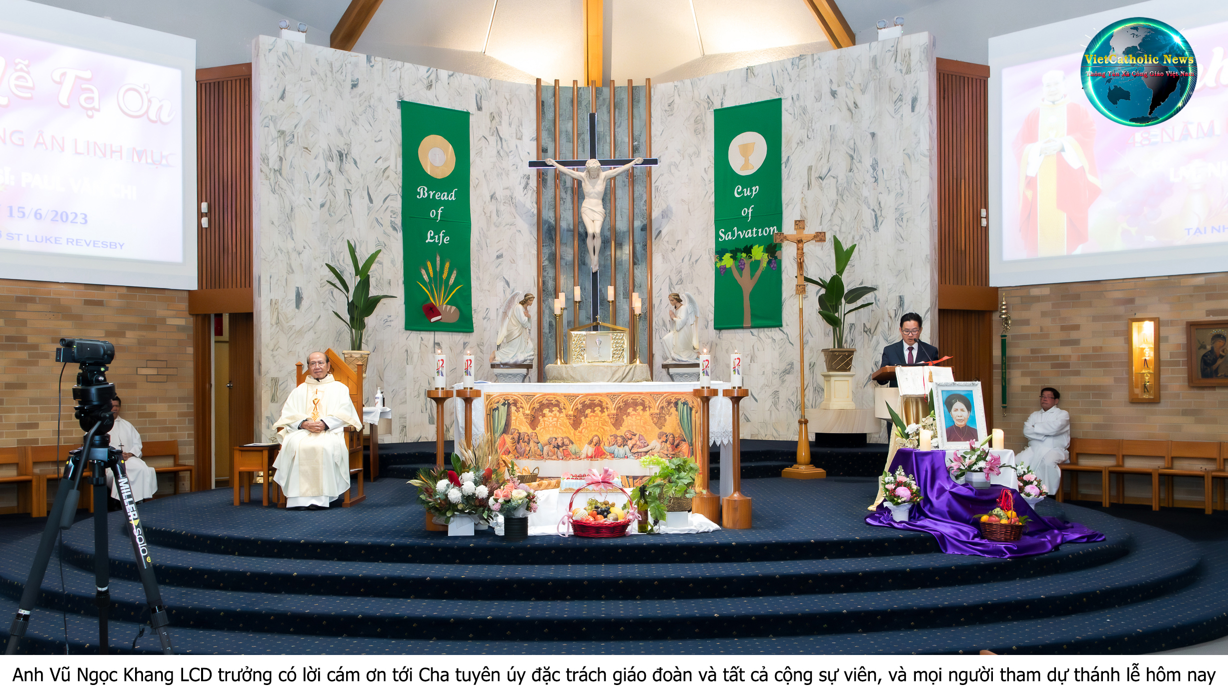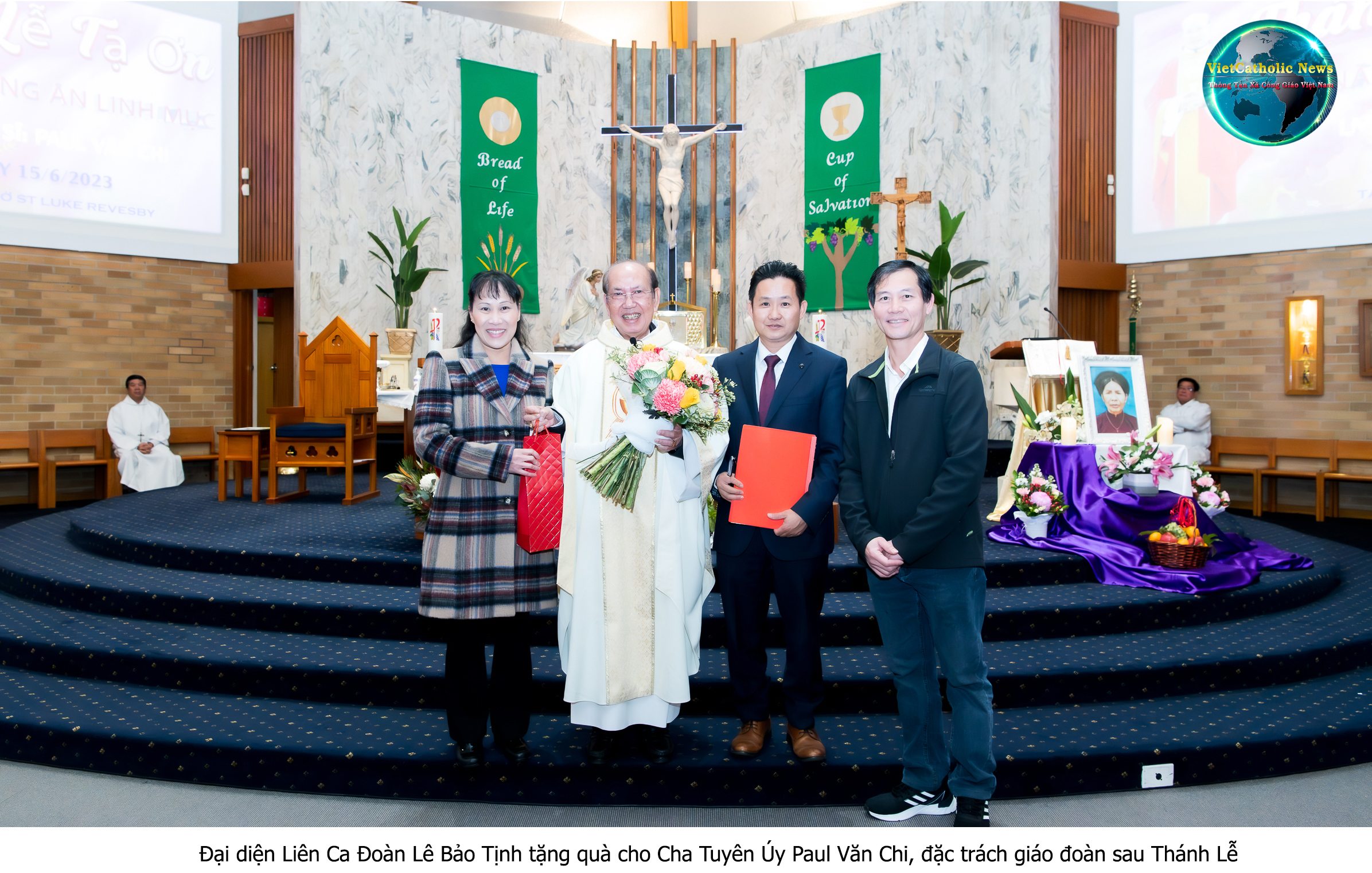 Thánh Lễ Tạ Ơn 48 năm Linh Mục Paul Văn Chi được cử hành tại nhà Thờ St Luke Revesby lúc 7 giờ chiều ngày 15/6/2023, do Liên Ca Đoàn Lê Bảo Tịnh tổ chức, trong sự hiệp thông của Anh chị em trong Gia Đình thân thuộc, quý đại diện phong trào, quí ca viên ca đoàn Lê Bảo Tịnh, cùng quý khách và cộng đoàn dân Chúa.