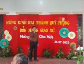 Sau thánh lễ, chúng tôi cũng dự tiệc mừng, một bữa tiệc rặt phong cách miền tây. Chúng tôi chụp hình khi quí cha đi “chào bàn” một cách thân thiện, vui vẻ.