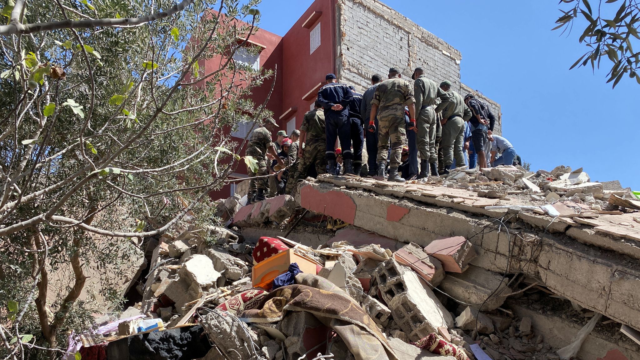 Đoạn video được quay bằng máy bay không người lái cho thấy những ngôi làng cổ gần Marrakech bị đổ nát. Các tổ chức cứu trợ cho biết, ba ngày đầu tiên sau thảm họa là khoảng thời gian quan trọng để tìm kiếm những người sống sót.
