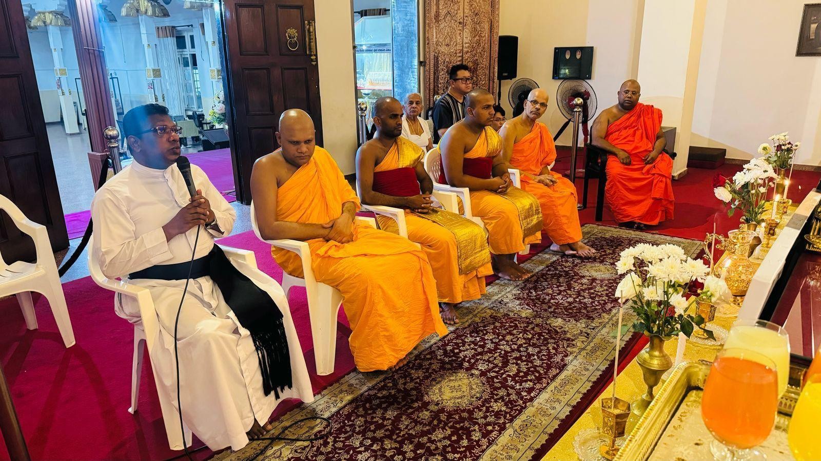 Các nhà lãnh đạo liên tôn cầu nguyện cho sức khỏe của Đức Giáo Hoàng Phanxicô tại chùa Phật giáo Mahabodhi, ở Colombo, Sri Lanka, vào ngày 25 tháng 2 năm 2025. (Nguồn: Mục sư Jude Chryshantha, Giám đốc quốc gia, Truyền thông xã hội.)