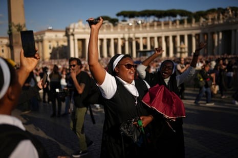 Các nữ tu phản ứng sau khi công bố Giáo hoàng Leo XIV mới được bầu tại Vatican. Ảnh: Francisco Seco/AP