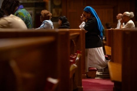 Các tín đồ cầu nguyện trong buổi lễ giữa trưa tại Nhà thờ St. Matthew vào thứ năm ở Washington. Ảnh: Mark Schiefelbein/AP