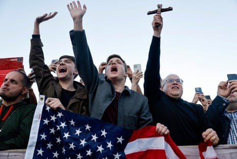 Người Mỹ từ Texas ăn mừng sau khi Giáo hoàng mới được bầu, Giáo hoàng Leo XIV, được công bố tại Thành phố Vatican, Vatican. Ảnh: Mario Tama/Getty Images