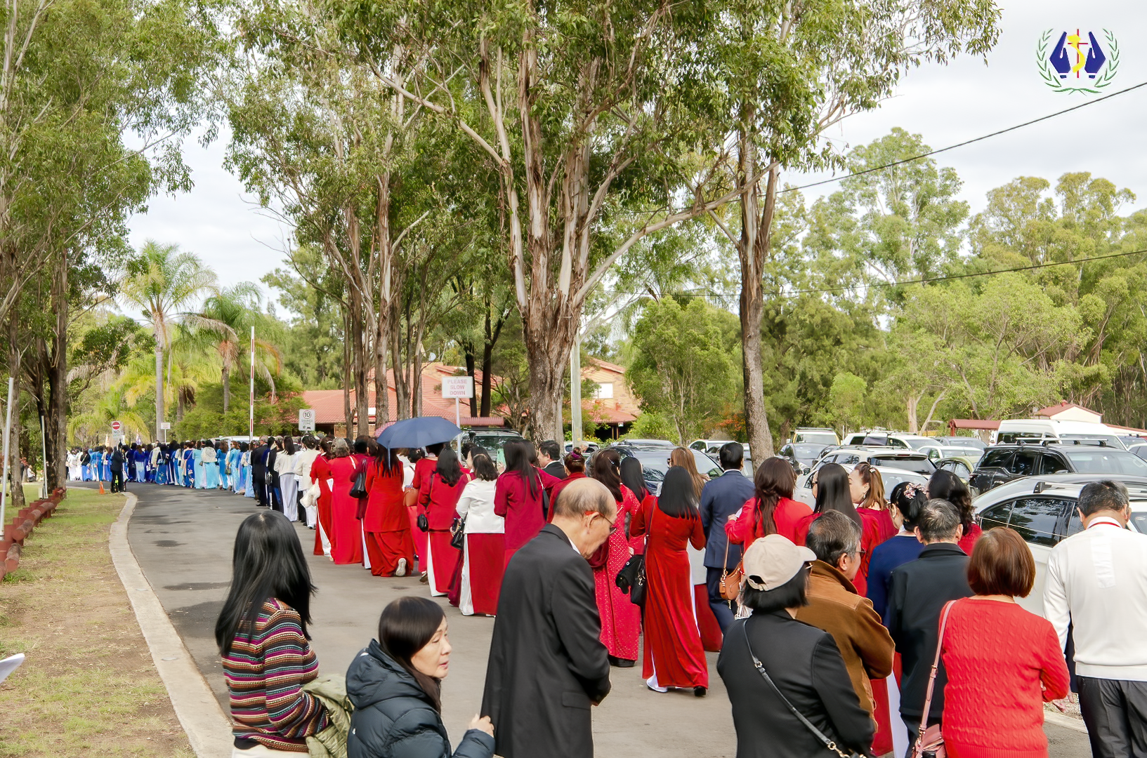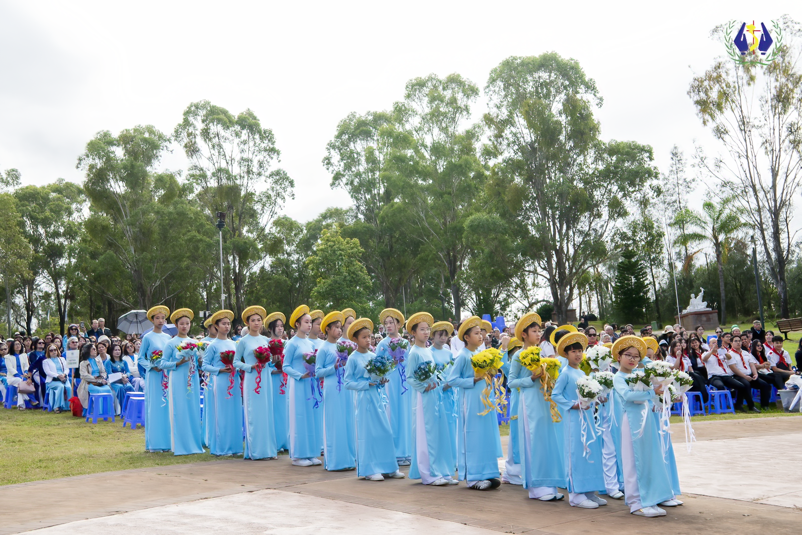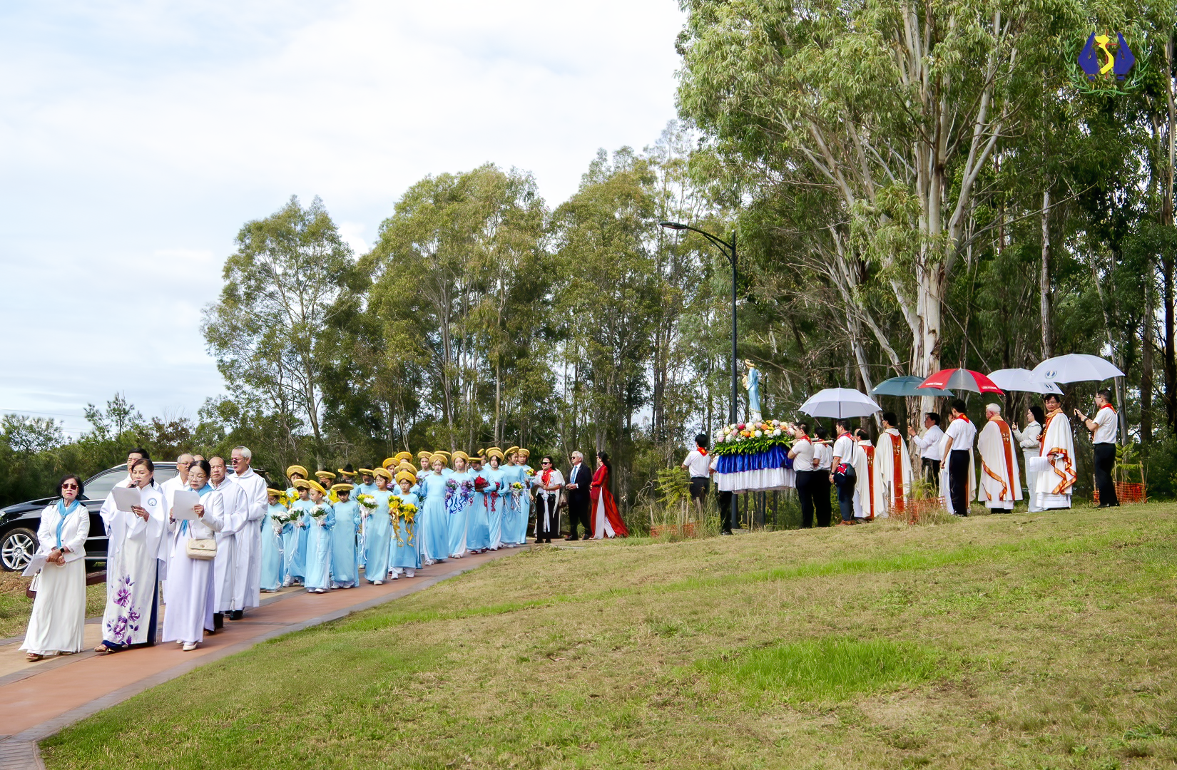 Cuộc rước Cung Nghinh Đức Mẹ đoàn rước vừa đi vừa lần hạt 5 sự mừng cầu cho Cộng Đồng và Gia Đình, về gần tới nơi khán đài hành lễ chính mọi người cùng cất tiếng hát chung bài: Mẹ Rất Nhân Từ. Đoàn người Rước Kiệu Đức Mẹ về Lễ Đài chính tại trung tâm, và diễn ra một Thánh Lễ đồng tế trọng thể gồm 4 Cha. Nguyễn Văn Tuyết tuyên úy cộng đồng Công Giáo chủ tế Thánh Lễ hôm nay, Cha Trần Văn Trợ giảng thuyết nói về Mẹ Hiền Mẫu. Trước Thánh Lễ nghi thức dâng hoa do cộng đồng Công Giáo Việt Nam TGP Sydney được tổ chức trong ngày Hành Hương về bên Mẹ tại Trung Tâm Thánh Mẫu Bringelly, với đoàn dâng hoa gồm thiếu nhi. Họ mặc trang phục truyền thống áo dài trắng, tay ôm bó hoa, tiến dâng những tràng hoa rực rỡ, kèm theo các điệu múa, bài ca kính Mẹ. Tuy nhiên, việc dâng hoa không chỉ dừng ở nghi lễ bên ngoài. Dâng Hoa – Một nghĩa cử yêu thương, không thể thiếu trong tháng Hoa.