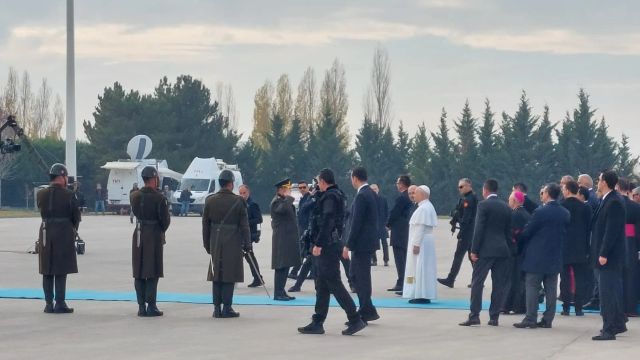 Khi hạ cánh xuống Sân bay Quốc tế Esenboğa ở Ankara, Thổ Nhĩ Kỳ, Đức Giáo Hoàng đã được chính quyền Thổ Nhĩ Kỳ và các thành viên quân đội chào đón.