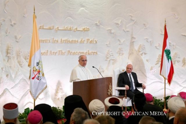 Theo tin Tòa Thánh, Đức Leo XIV đã được đón tiếp trọng thể tại Dinh Tổng Thống Lebanon vào ngày 30 tháng 11 năm 2025. Nhân dịp này, ngài đã đọc bài diễn văn sau đây với các nhà cầm quyền Lebanon, xã hội dân sự và ngoại giao đoàn, dựa vào bản tiếng Anh của Tòa Thánh: